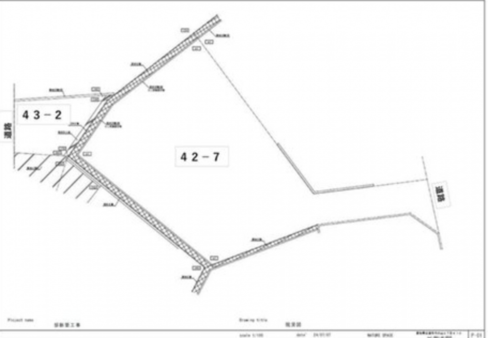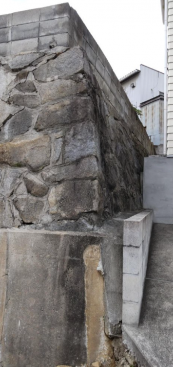 - セットバック:要、崖上につき建築制限有、隅切り有、敷地内段差有、石積擁壁あり(現況図面参照)。撤去してノリ面造成+2カ所 隣地土留め擁壁設置案の見積りあります。
