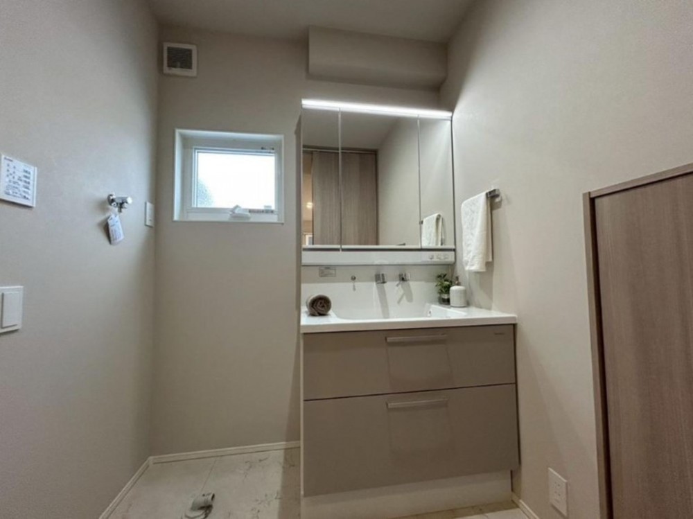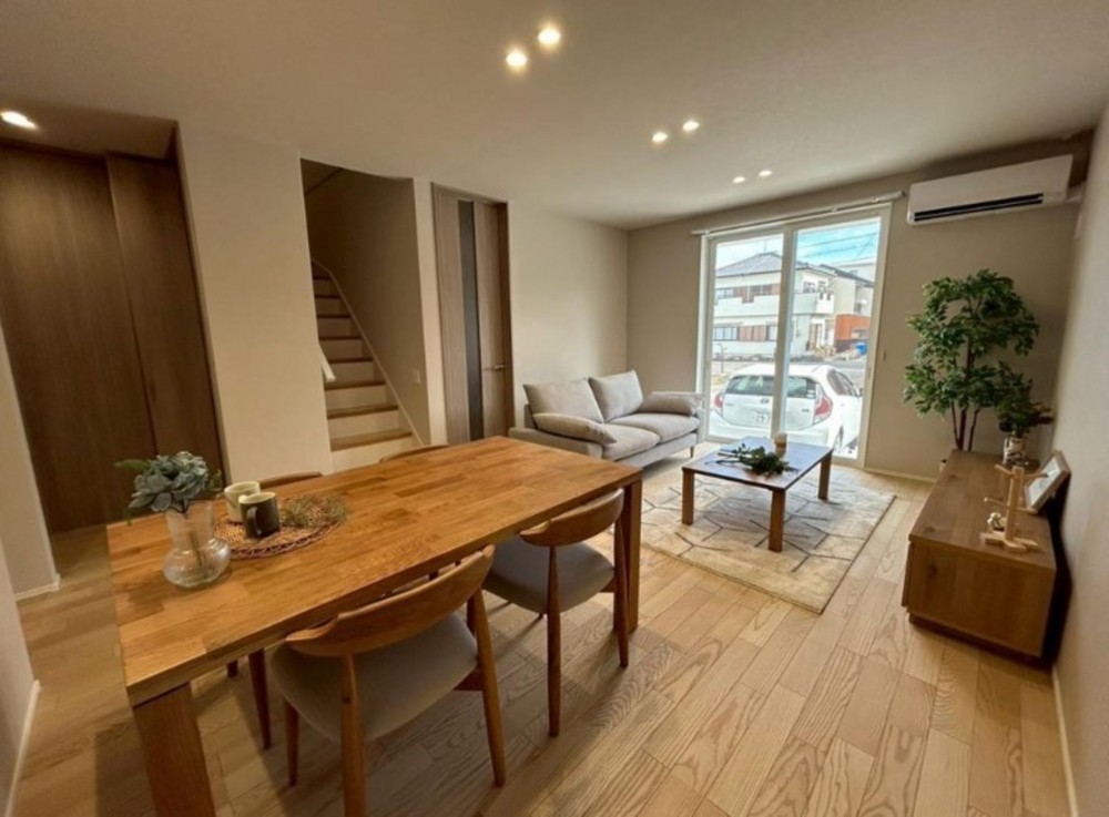 - オール電化、システムキッチン、カウンターキッチン、IHクッキングヒーター、食器洗浄乾燥機、浴室乾燥機、モニタ付インターホン、ウォークインクローゼット、複層ガラス、駐車場3台分、床下収納、トイレ2箇所、駐車並列3台可能(車種による)
